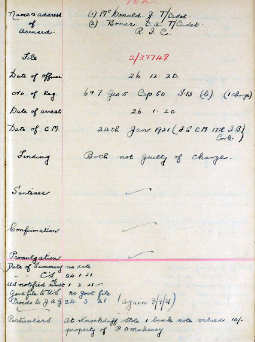 1921 Jan 26. Tried by FGCM with CA Bonar