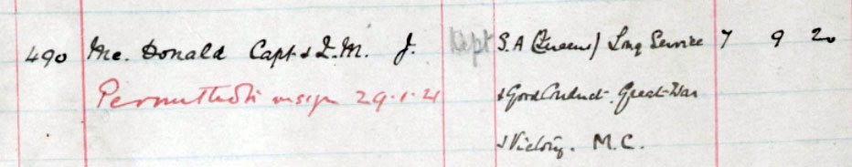 1918 Mar. MC awared during the retreat at Amiens