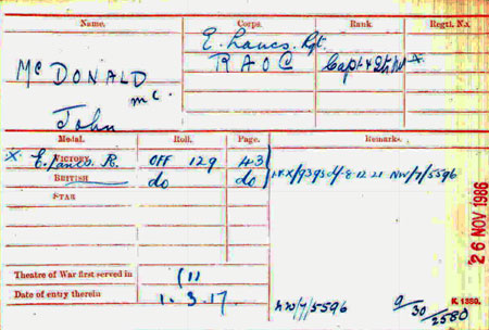 1914 Nov 14. 4th Battalion, The East Lancashire Regiment; Acting Serjeant-Major John McDonald to be Quartermaster, with the honorary rank of Lieutenant. Dated 14th November, 1914