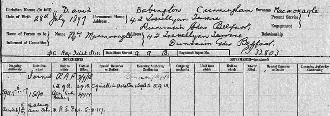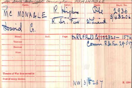 1917 Aug 11. On a list of British Casualties. Wounded D B C McMonagle