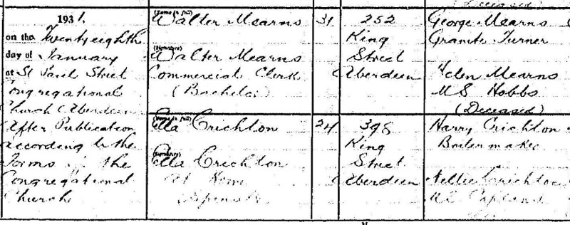 He probably attended King St Public School, Aberdeen, as there are a number of newspaper references to a Walter Mearns being a pupil there pre-WW1. His MIC address is 252 King St, and the school was at 338.