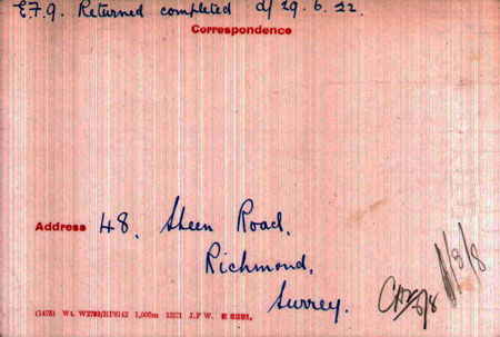 1939 Living in Surbiton with Bridget M Moore at 16B Cadogan Road , Surbiton M.B., Surrey, He was a Commercial Traveller and later a Clerk at the Ministry of Labour at Kew