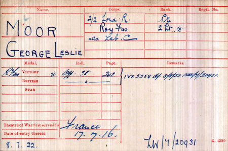 1915 Oct 29. Second Reserve. The Royal Fusiliers (City of London Regiment). The undermentioned to be temporary Second Lieutenants: — Leslie Moor