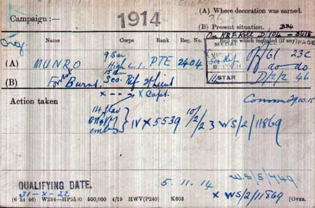 1915 Oct 30. The undermentioned temp. 2nd Lts. are transferred from Res. Bns. (except where otherwise stated), with seniority shown against their names. Sco. Rif.— F. B.Munro.