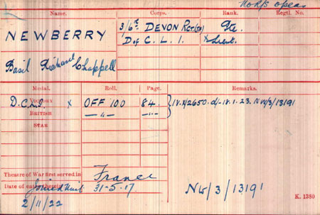 1917 Mar 1. DCLI. Cadet Basil Richard Chappell Newberry to be temp. 2nd Lt. .(attd.).