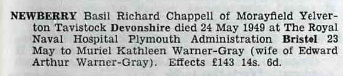 1940 Aug 7. C.S.M. Basil Richard Chappell NEWBERRY (142080), Devon R., to be Lt.