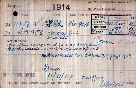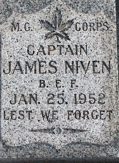 Parents: James and Sarah Robb (nee Hope) NIVEN Wife: Katherine (nee Bryce) NIVEN WW 1 Veteran, Captain, British Army, Machine Gun Corps.