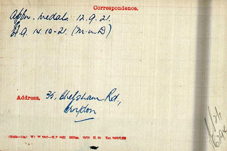 1920 Nov 8. Joined ADRIC with service no 977. Posted to I Coy. Next of Kin, Mrs Gardner, 35 Chelsam Rd, Croydon (as on MIC)