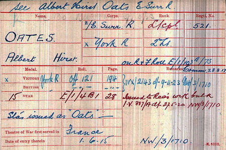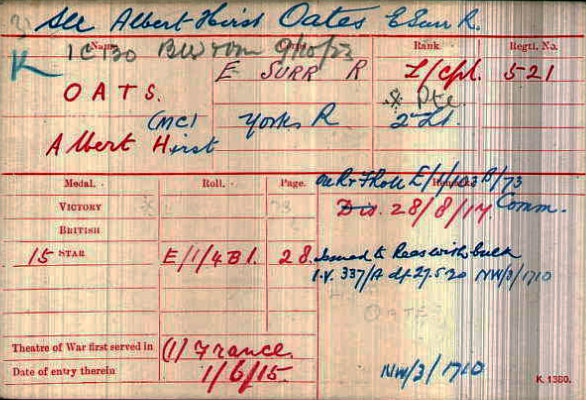 1917 Aug 29 Commissioned 2nd Lt in Yorks Regt. Albert Hirst Oates