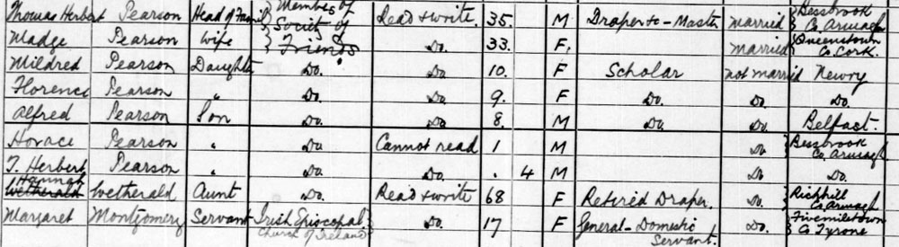 1901 census at 1 Charlemont Square, Camlough, Armagh