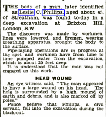 1939 Nov 4. died Lambeth aged 48, Died - fell into a constructon site in the dark