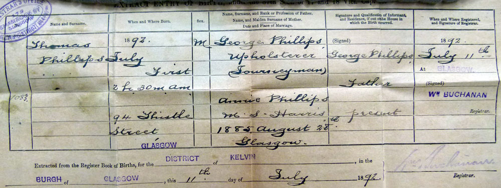 1892 Jul 1. Born Lanarkshire, Scotland, from RIC register