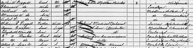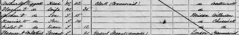 1891 census at 60, Oxford Road, Chiswick. His father is a clerk at West Middlesex Water Coy.