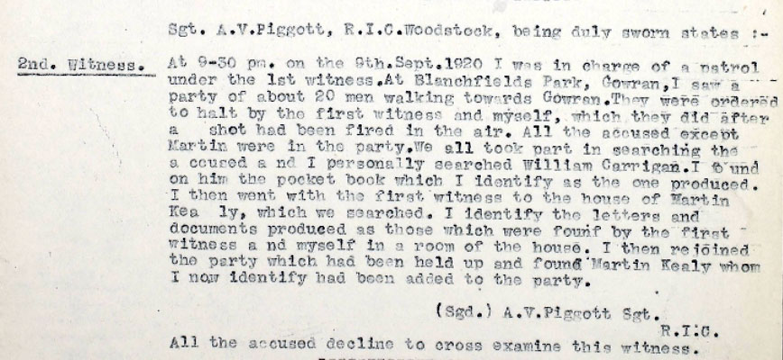 1920 Sep 9 Gives evidence about and incident. Also with him were DI H Biggs and JT Pratt