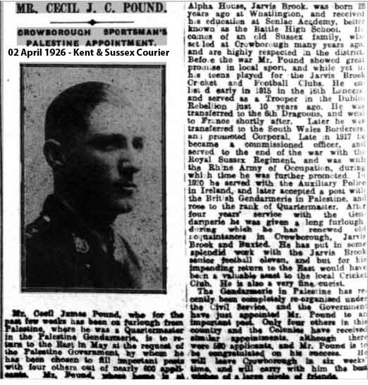 1922 Mar 29. Joined the British Gendarmerie secton of the Palestine Police as a Sergeant. And was promoted to Quartermaster