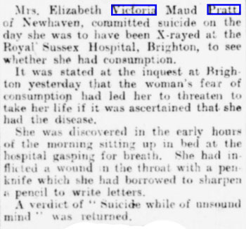 1930 Feb 15 His wife Victoria died in Brighton. Suicide