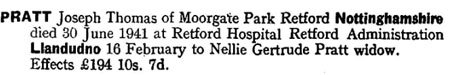 1941 Jun 30 died Retford. He was a Petro; Stoe Supervisor . Suffered a fractured skull when his bike was in collision with a lorry