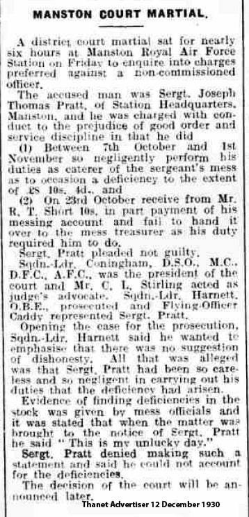 1924 Dec 17. R. Sussex R.—Lt. J. T. Pratt on enlistment, in the ranks, resigns his commn. He enlists in RAF with number : 356856