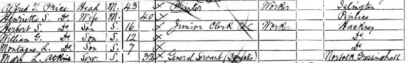 1911 census at 3 Canonbury Mansions, Canonbury N, an insurance clerk
