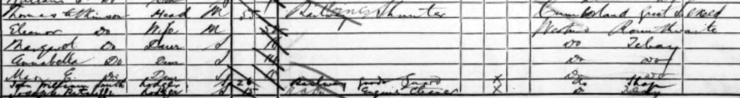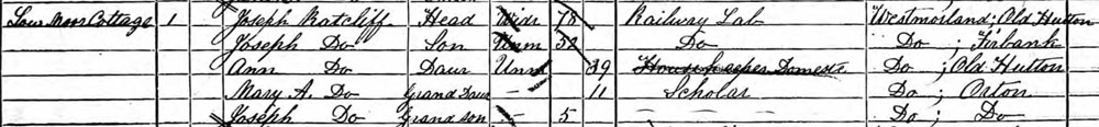 1881 census at Low Moor Cottage, Orton, Westmorland with grandparents