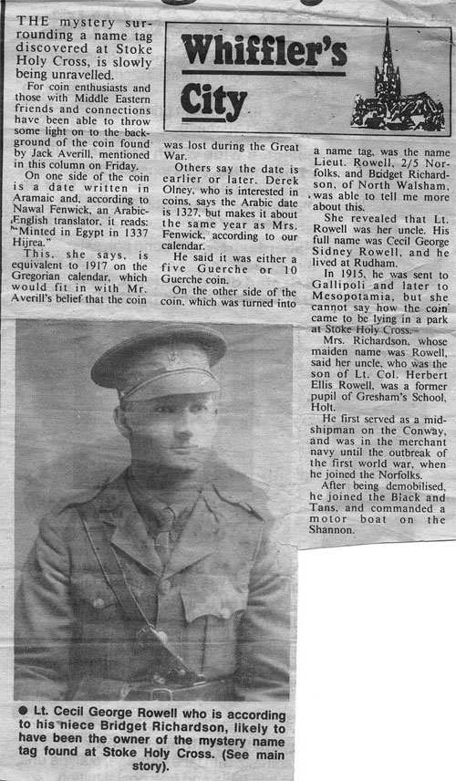 1915 Jan 4. Commissioned 2nd Lt in Norfolk Regt.Cecil G. S. Rowell.