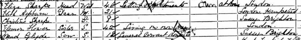 1901 census his mother is at Albert Rd, Brighton. But he is not there