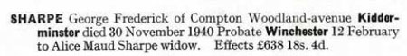 1940 Nov 30 . Died Kidderminster, buried Brighton . Royal Army Pay Corps