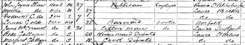 1901 census at 107, Bradford Arms, Bradford Street, Bolton