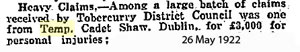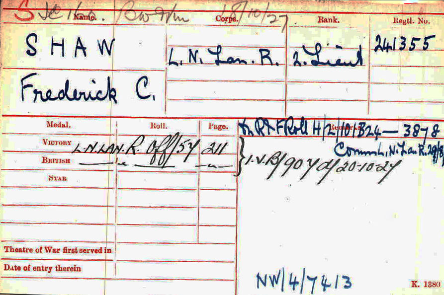 1922 May 26. He seems to be the only Shaw in P Coy, so I assume this refers to him.