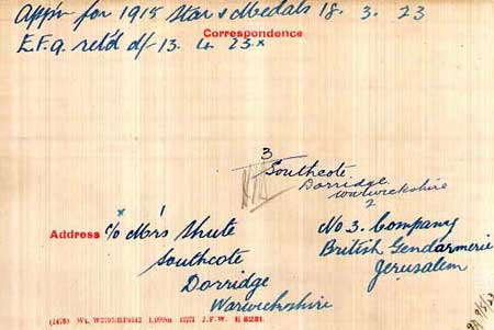 1920 Dec 29. Captain James Lister Shute enlisted in the ADRIC as no. 1381. Posted to M Coy.