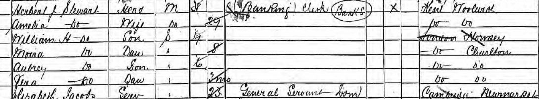 1911 census at 2 Herbert Villas, Pelham Road, Wimbledon