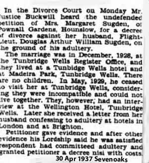 1936. Divorce Court File: 1245. Appellant: Margaret Sugden. Respondent: Douglas Arthur William Sugden. Type: Wife's petition for divorce