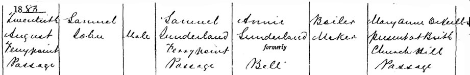 1883 Aug 20 . Born Cork. His mother is a 39 year old Widow in Passage West in 1901 census - she was a Domestic Servant. And she died in 1938