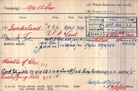 1964 Oct 2. died. Given in Royal Artillery records, but does not record where he died. There is a Samuel J Sunderland died in Devon Oct/Dec 1964 which looks like him