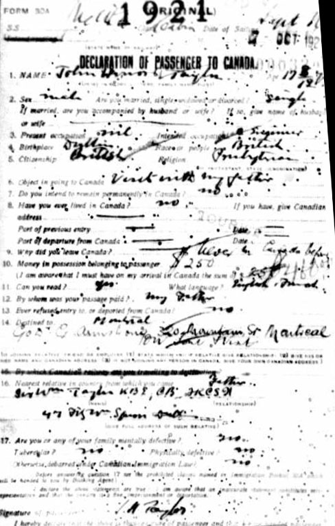 1904 Jan 6 Born Dublin. In Irish BMD. His brother William Taylor was also in ADRIC