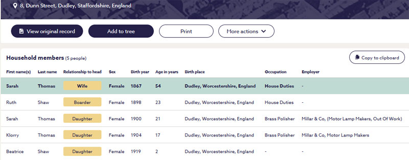 1901 census at Dudley. His parents Charles Thomas married Sarah Wheldon in 1885