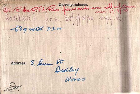 1939 Register. Living at 31 Fountain Street , Dudley . He is a Civil Servant Ministry Of Labour, Employment Assistant Board. There is a note that he was a Lt in RFA
