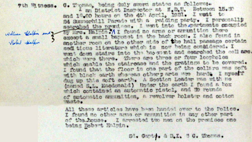1921 Jan 21 On a raid at Grace Park Gardens where arms and ammunition were found