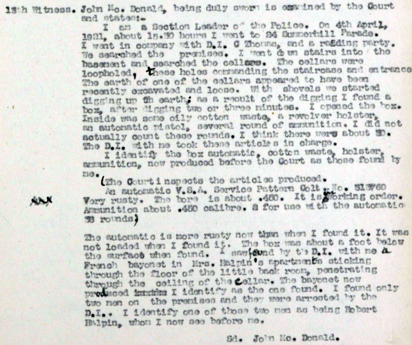 1921 Apr 4. On a raid that finds a gun . Section Leader J MacDonald was there too