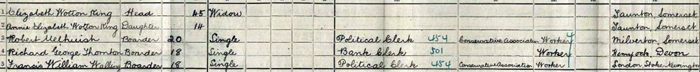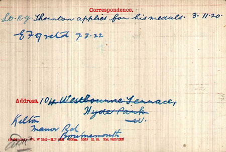 1901 census as a boarder at a school in Taunton. He appears to be a brother of CH Thornton who is also at the school. His mother had just died and his father was living in Lamb Hotel, Dulverton