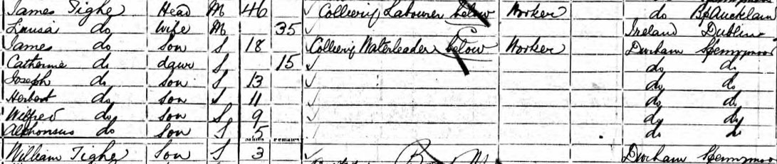 1901 census at Tudhoe, Durham