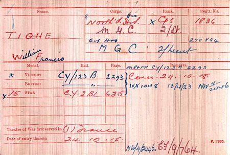 1920 Nov 3. Joined ADRIC with service no. 961 . Posted to G Coy. Wife at Killarney House, Spennymoor , Durham
