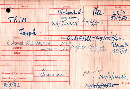 Oddly I cannot get him in census or birth records. I suspect he was Joseph Trim born Barnet in 1893, son of a shopkeeper but I cannot link him to MIC address. I also suspect he is related to Edward Joseph Trim - Joseph Trim is not a common name.