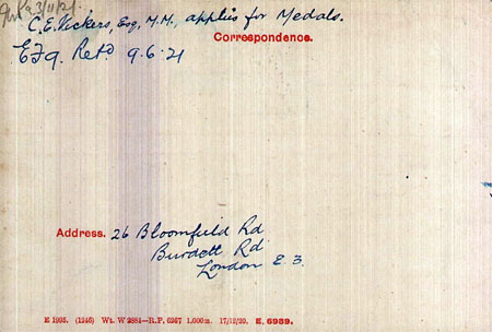 1920 Sep 14. Joined ADRIC with service no . No.559. Posted to I Coy. Section Leader. Wife at 26 Bloomfield Rd, Burdelt Road, London E3