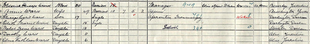 1901 census Living in Stockton on Tees