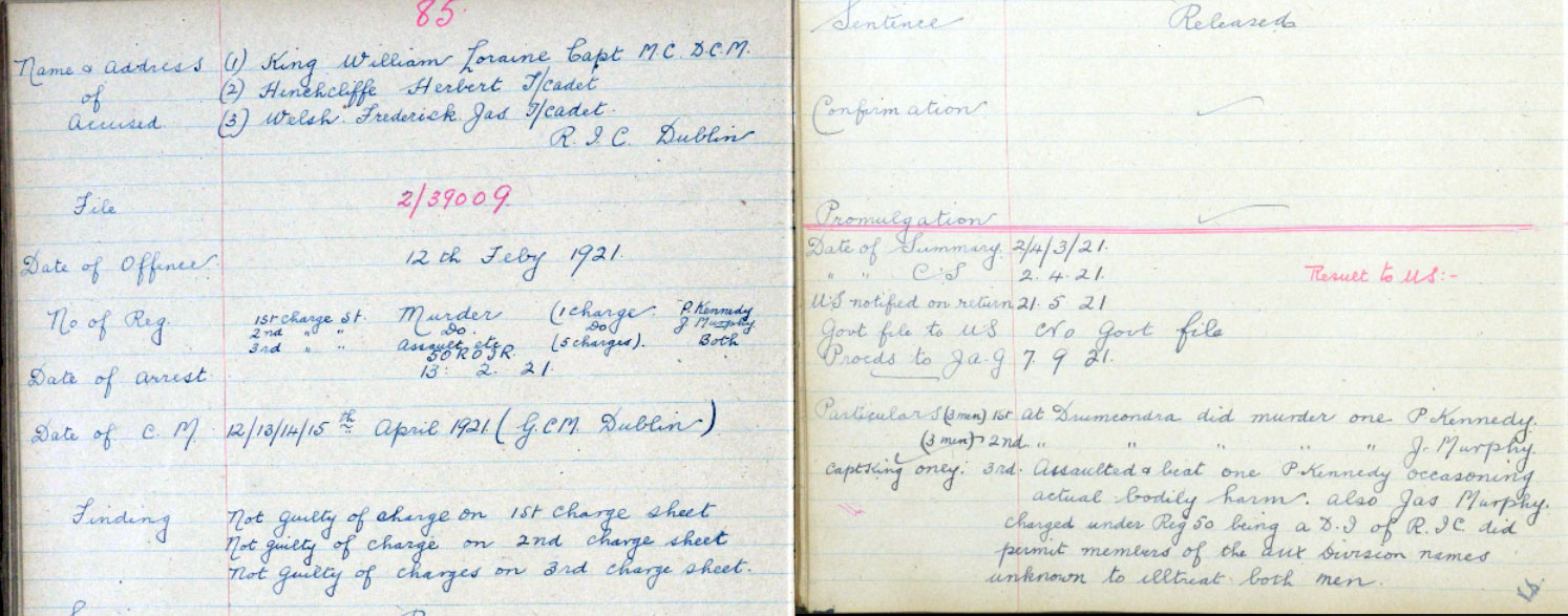 Tried with King for murder of James Murphy and Patrick Kennedy on Feb 9 1921