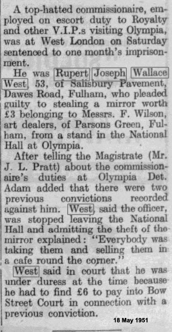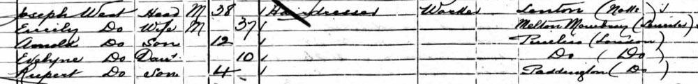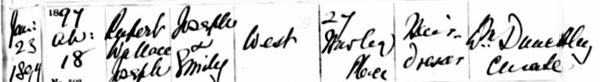 1897 Jan 23. Born Paddington Green St Mary. "Rupert Joseph West", baptised "Rupert Wallace Joseph West"