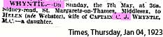 1894 Oct 5. Born St Pancras, London