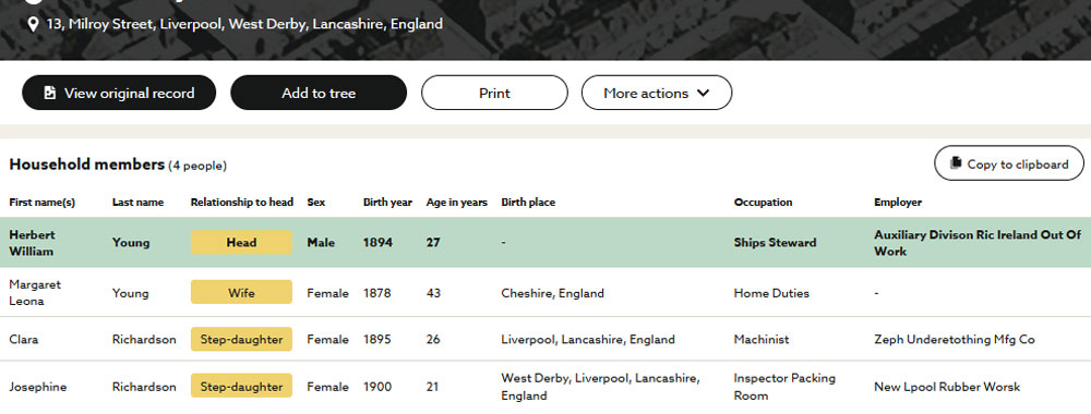 1921 census at Milroy St, Liverpool. Wife Margaret Leona