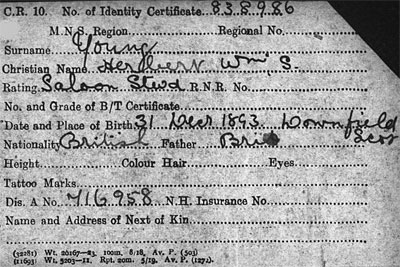 1919 Mar 15. Obtains a Merchant Seaman card as a Steward